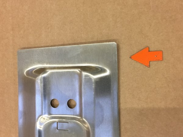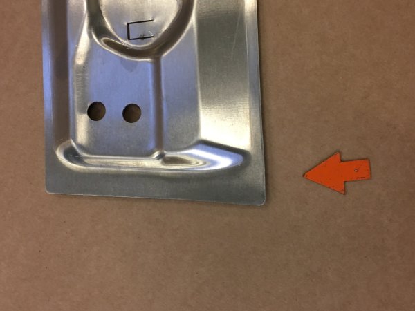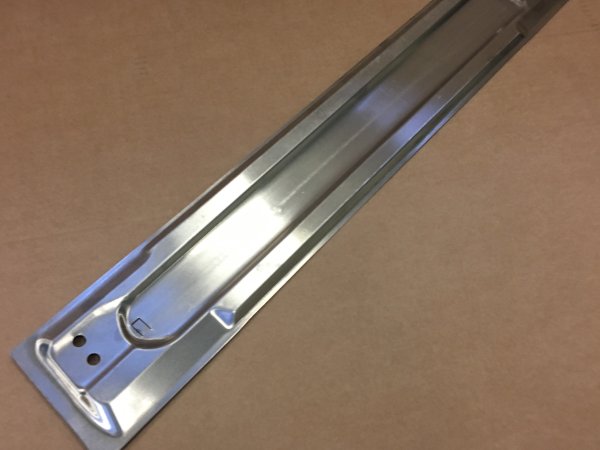 Roof plate Left 911 Targa roof. This Plate is special made for restoring your targa roof. Plate is slightly over sized in length. They should be cut to the right length for perfect fit (arrow).